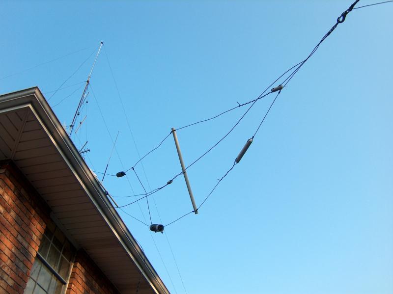 Although it was left hanging down draped across the roof, only one of the wires in the W9INN dipole was broken. All the wires are made from # 14 Gauge copper wire.