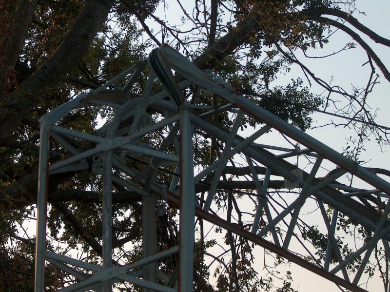 The Big Bend. The center pipe was connected to the TH-3-jr beam atop the tower. The antenna rotor was located at the bottom of the tower, and this pipe rotated the beam. The pipe is made from 1-1/4" water pipe. It bent like a garden hose when the tower collapsed.
