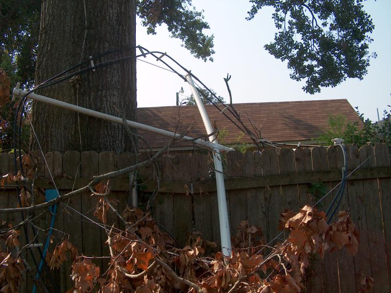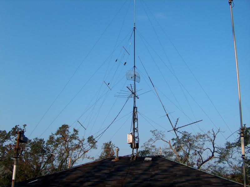 Among the more fortunate survivors were W5JGV and KB5YSE - our QTH was only moderately damaged. However, the LF and HF antenna systems at W5JGV were thoroughly trashed by Katrina. The following photos will give you an idea of some of the storm damage.