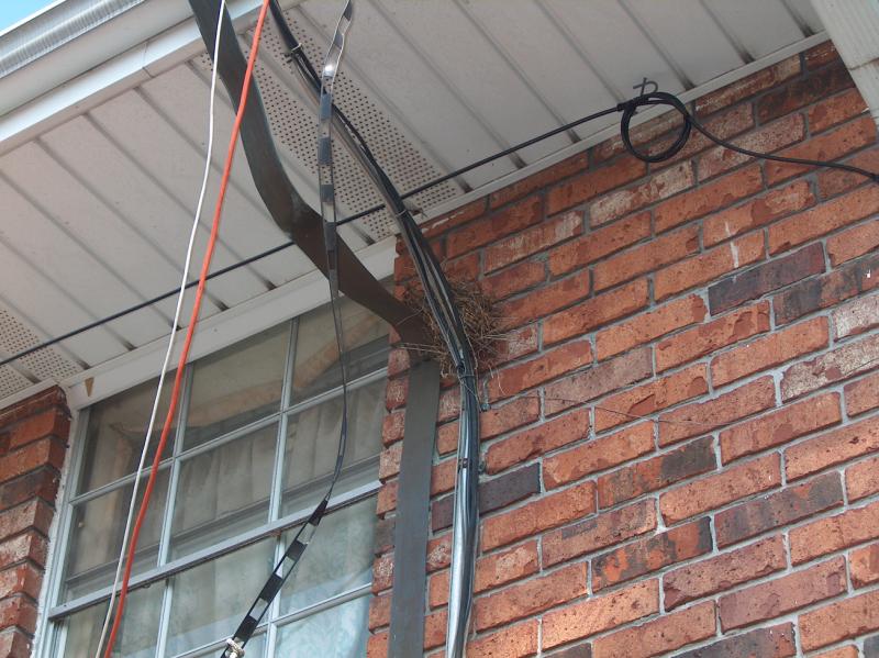 A rather amusing side-bar - doves are not known for building the sturdiest nests in the bird world, but the nest built by the family of doves that has nested on top of one of my copper ground straps for the past 8 years did survive the storm quite well indeed. For some reason, the dove chose to build her nest on the South side of the house, where the nest was fairly well protected from the hurricane winds.