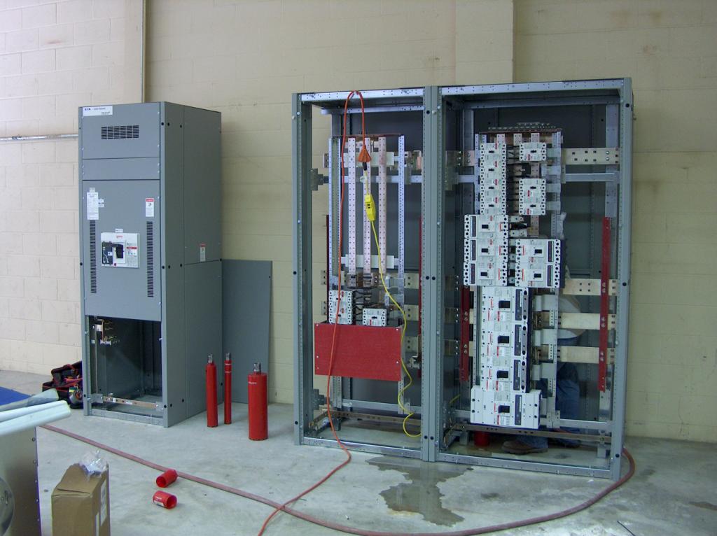 These are the main circuit breakers which will feed the electrical sub-panels throughout the building.