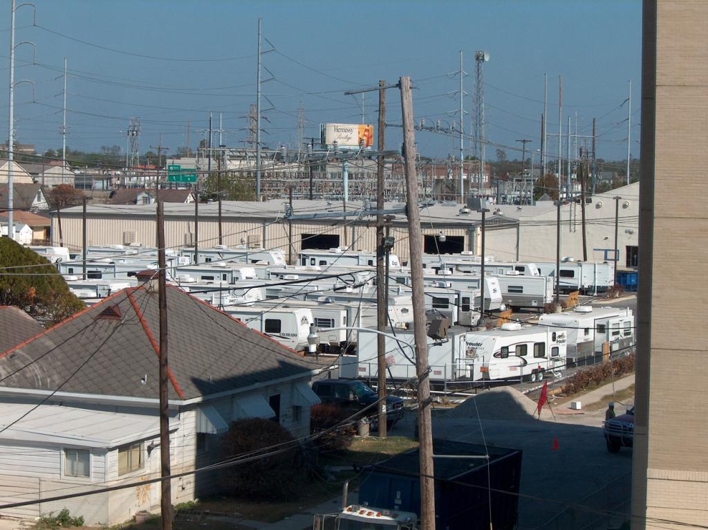 Meanwhile, Xavier University's parking lot has become a temporary trailer park for workers.