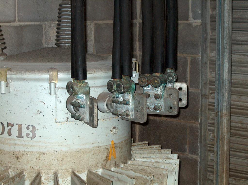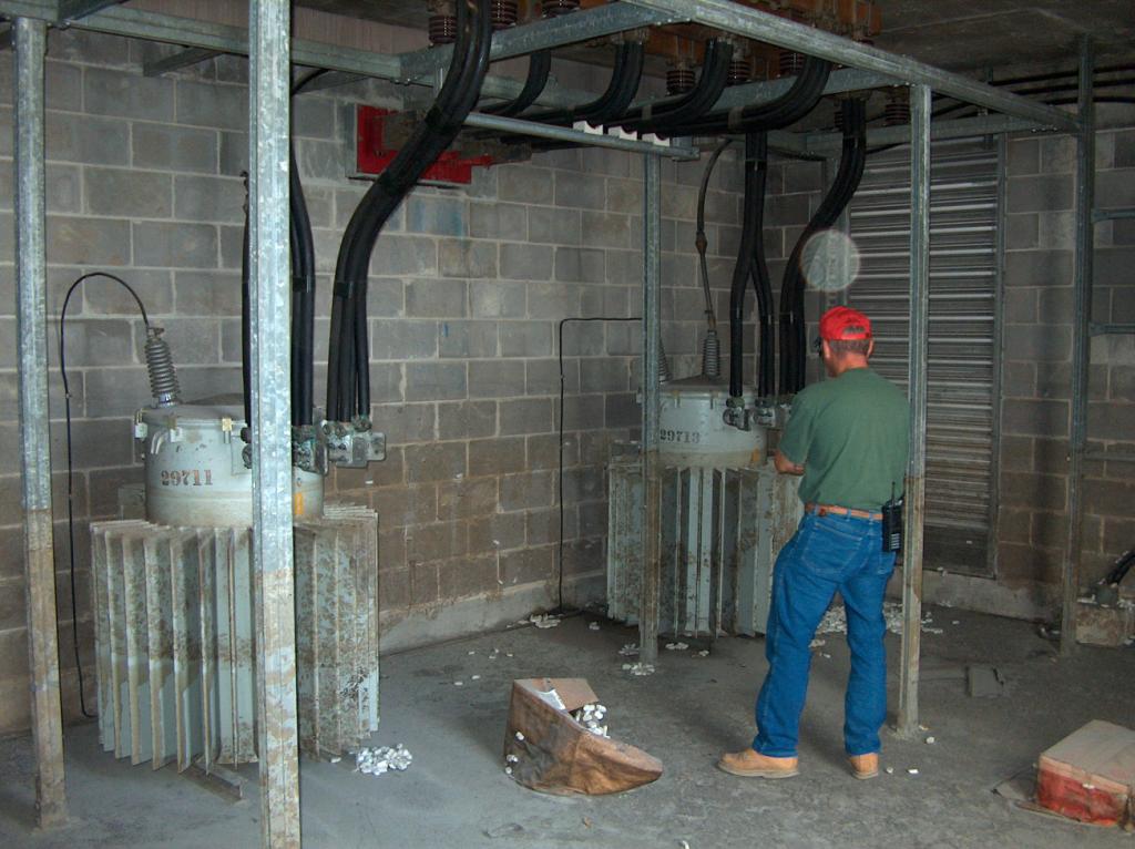 Meanwhile, back in the Entergy transformer vault, the electricians are working on the main feed wires. Notice the size of those wires!