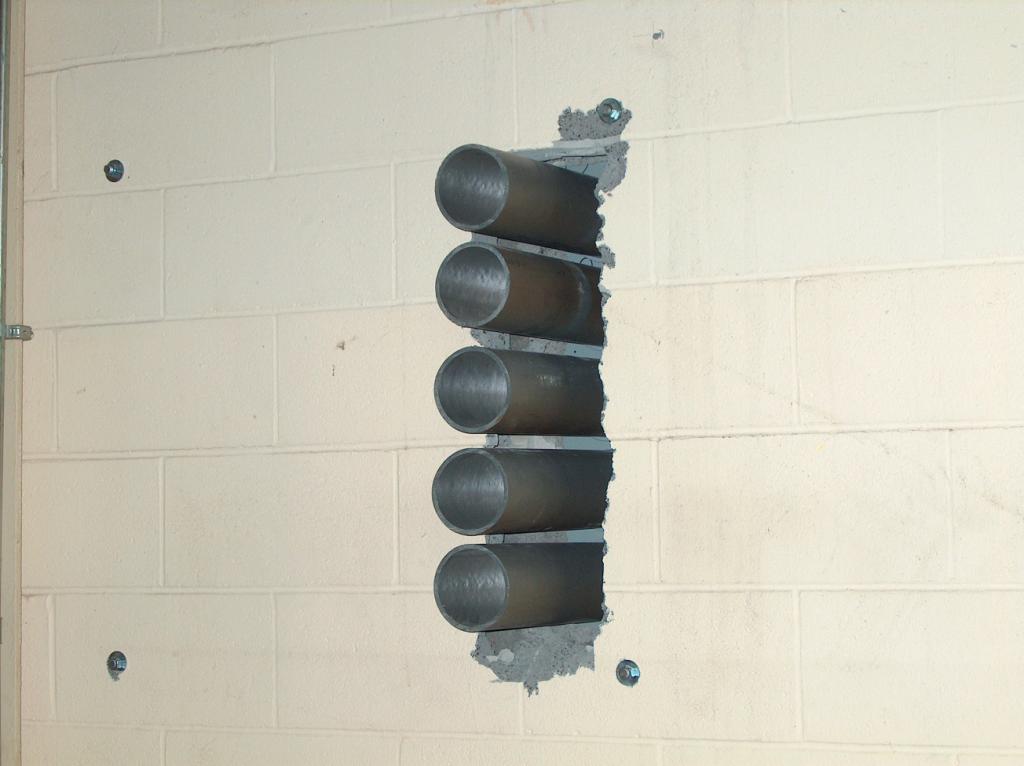 More holes through the wall. Through these will pass the wires that power the air conditioners for the building.