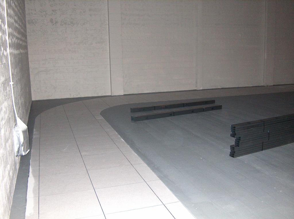 Back in the studio, the computer flooring stands ready to be installed over the open Pit space.