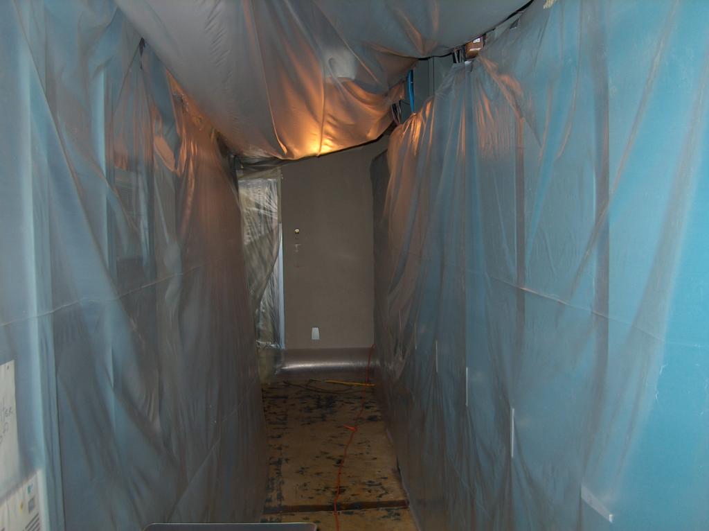 CentralCasting is covered in plastic during the cleanup.