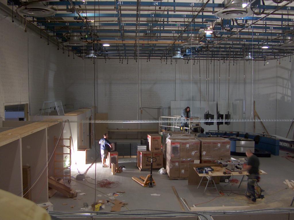 Installing the new studio lighting fixtures.