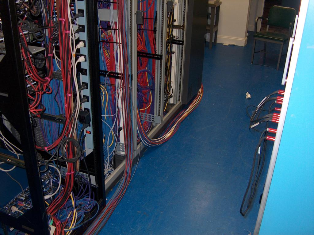 It takes lots of wires to make it all work. These run from the edit rooms and the new video room upstairs.