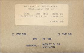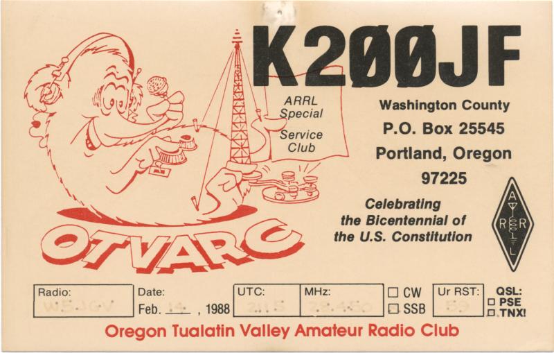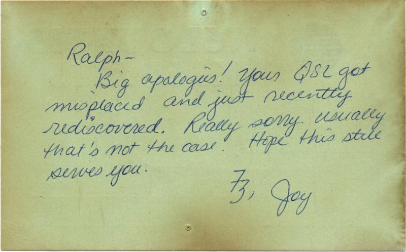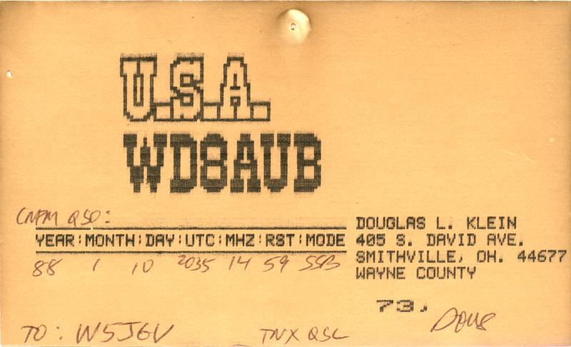 While packing away some items in the shack in preparation for moving to a new QTH, I came across some of my old QSL cards that were hanging on the wall behind a bookcase. They are a bit darkened and faded by age, but they bring back memories of some of my earlier days on the HF bands right after I had moved to the Jefferson Heights QTH. I thought you might like to have a look at some of them. Clicking on any picture opens a larger image. Please use your browsers BACK button to return to this page.
