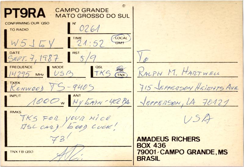 Some of W5JGV's QSL Cards