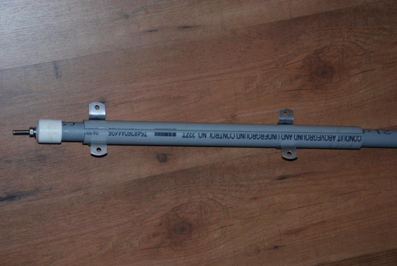 Because you cannot easily slip the PVC antenna pipe into the reinforcing section of PVC pipe, it was necessary to cut the larger reinforcing pipe lengthways along one side only. That allowed enough flexibility in the reinforcing pipe to be able to force the smaller pipe into the larger. It was a tight fit!