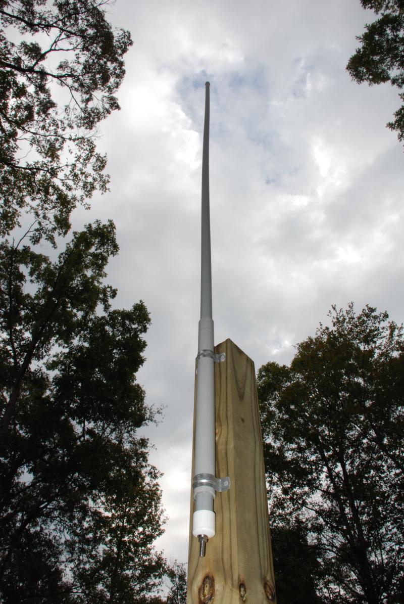 Even though E-Probe antennas are not supposed to work well when located close to trees, as you can see, the antenna is located amongst a grove of large trees. Nevertheless, the antenna performs admirably.
