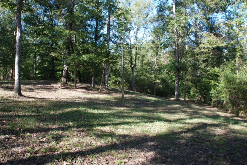Looking up the hill towards the ham shack, you can see the cable laying on the ground. I used the lawn mower and cut the grass and weeds very close to the ground so the cable was pretty much laying on the bare earth. After a year, the cable has become invisible under the new grass.