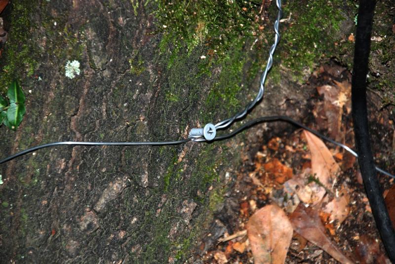 It appears that there are two methods generally used to connect to a tree for using it as an antenna. The first is to drive a nail into the tree some distance up from the ground, and the second is to use a coupling coil around the trunk close to the ground. Since I prefer not to climb trees unless I really have to, I decided that the coupling coil would be the better approach.