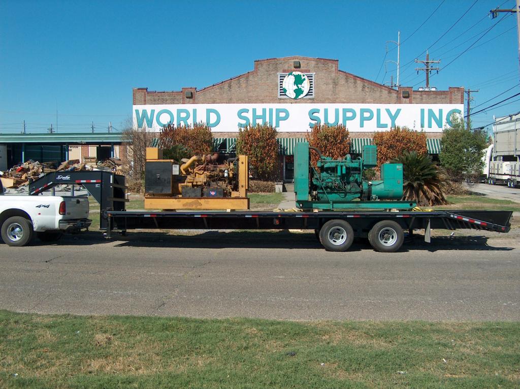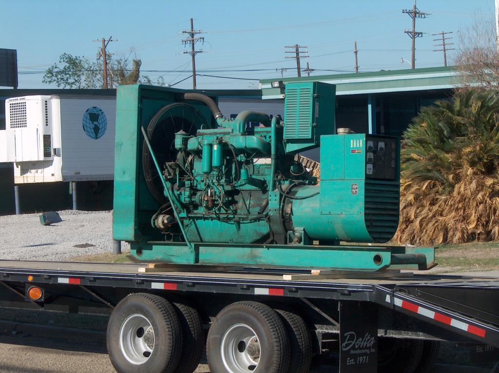Ready to be hauled off, the Technical Area emergency generator is about to be strapped down.