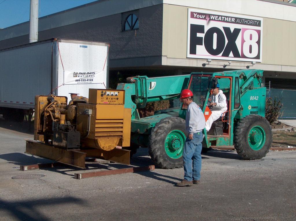 Having the right tools sure makes it easy! Lifting the Building Power emergency generator prior to placing it on the truck for disposal.