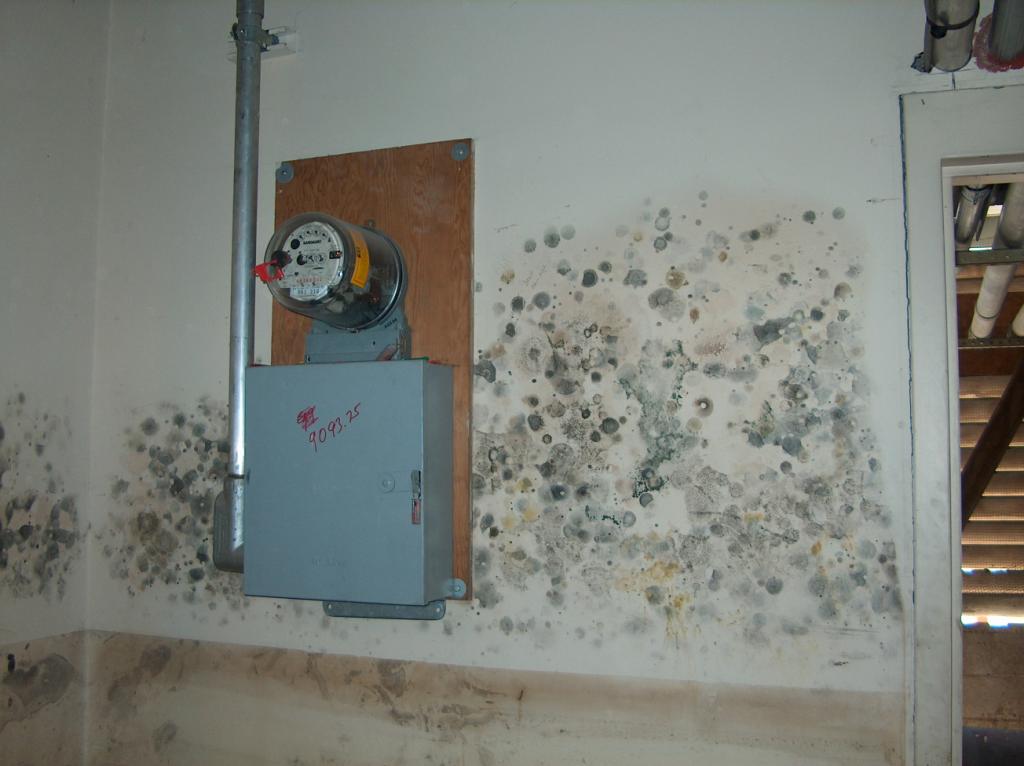 The water level is plainly evident on this wall. You can see how far the moisture wicked up the wall by the mold growth.
