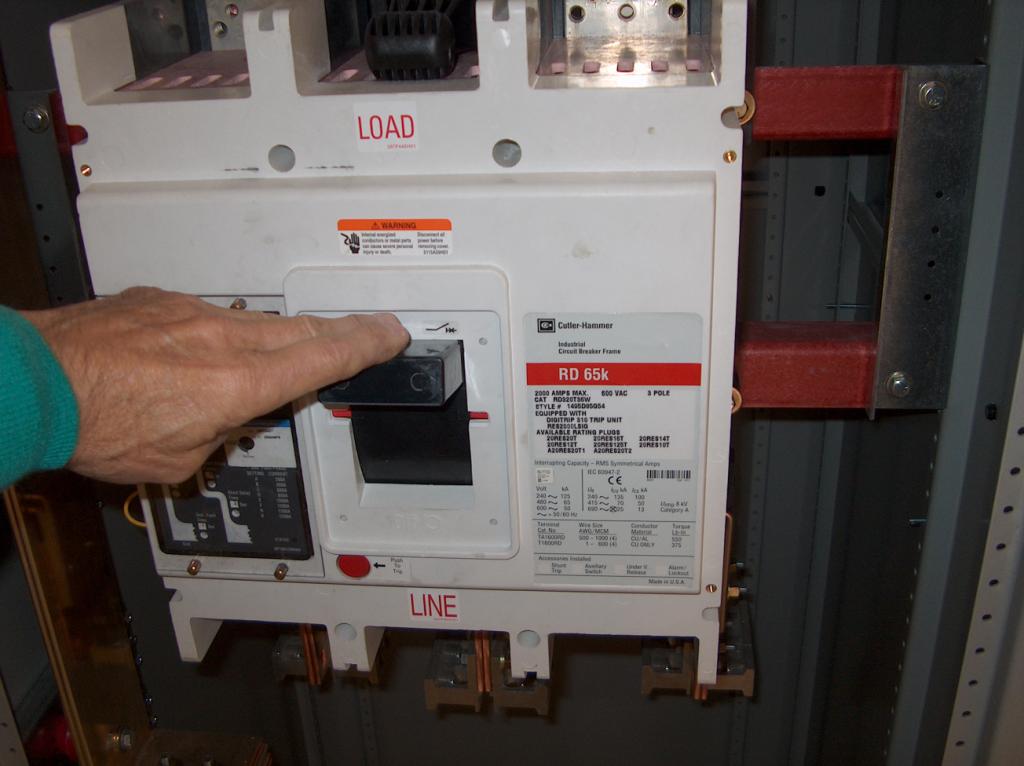 Connections to the main power circuit breaker.