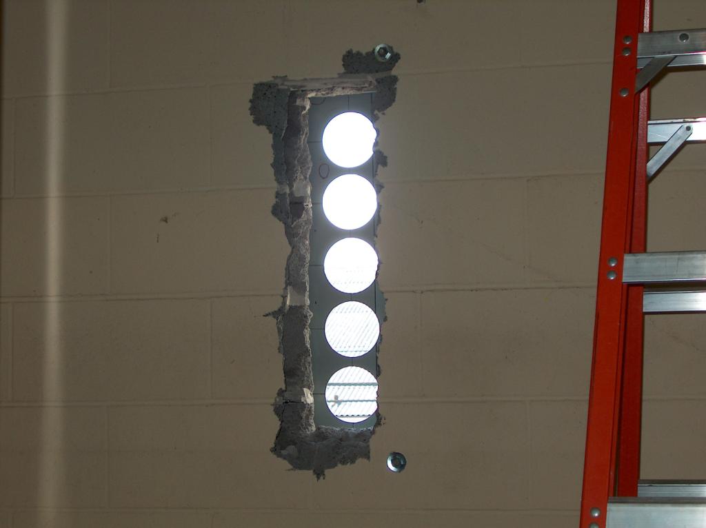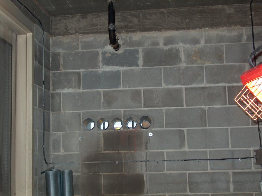 More holes through the wall. Through these will pass the wires that power the air conditioners for the building.