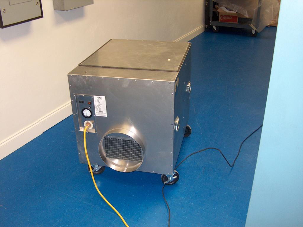 A portable air cleaner. Lots of these were placed all over the building. They ran 24 hours a day, cleaning the air throughout the entire floor.