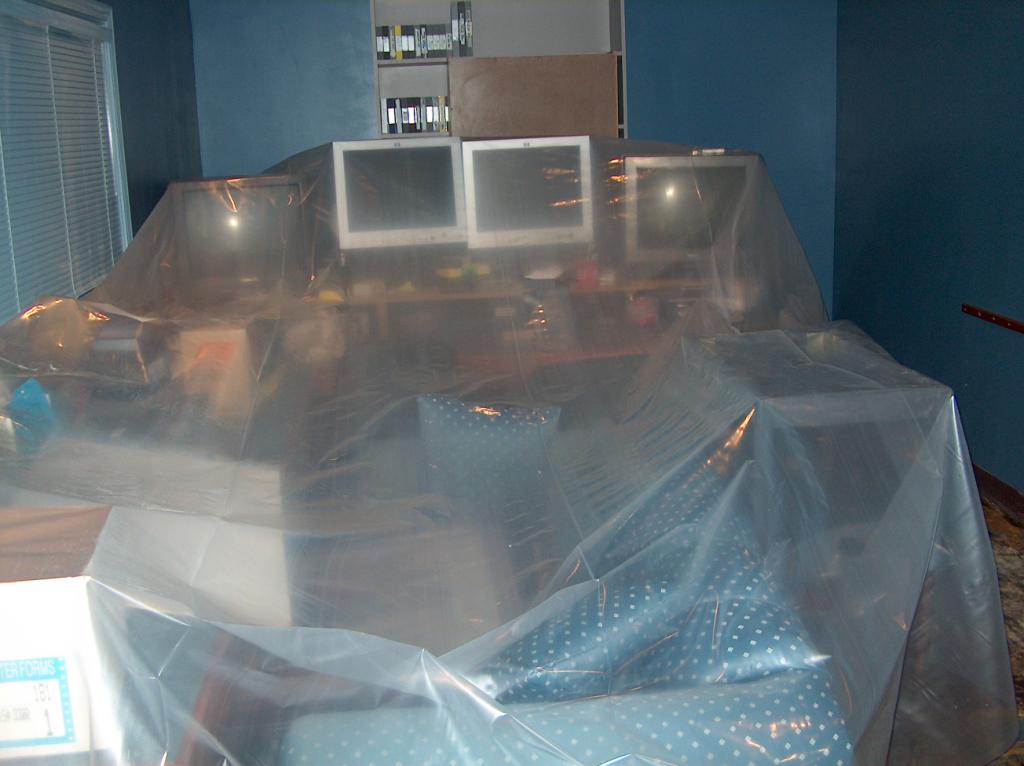 Everything is under plastic sheeting.
