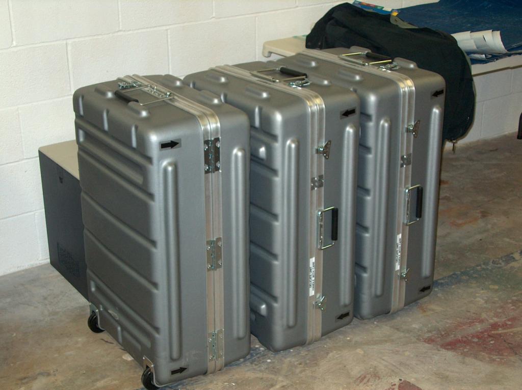 The "Flight Packs" have arrived! In these boxes is an entire control room that will get us back on the air from our temporary studios.