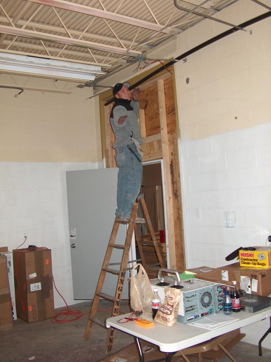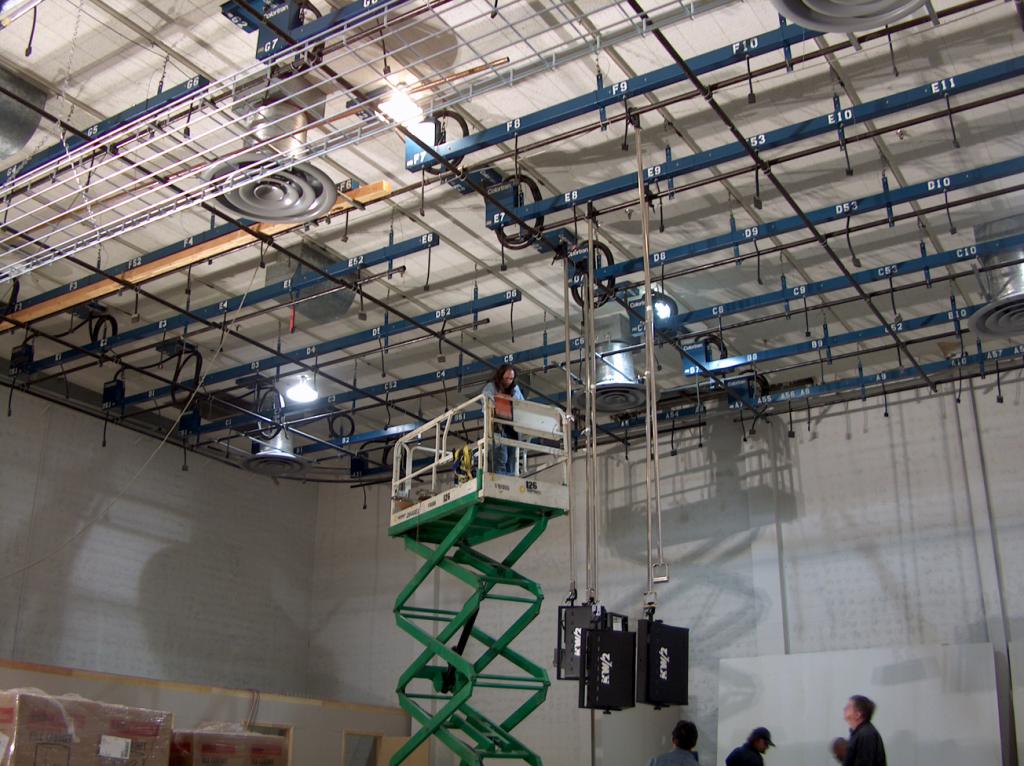 Installing the new studio lighting fixtures.