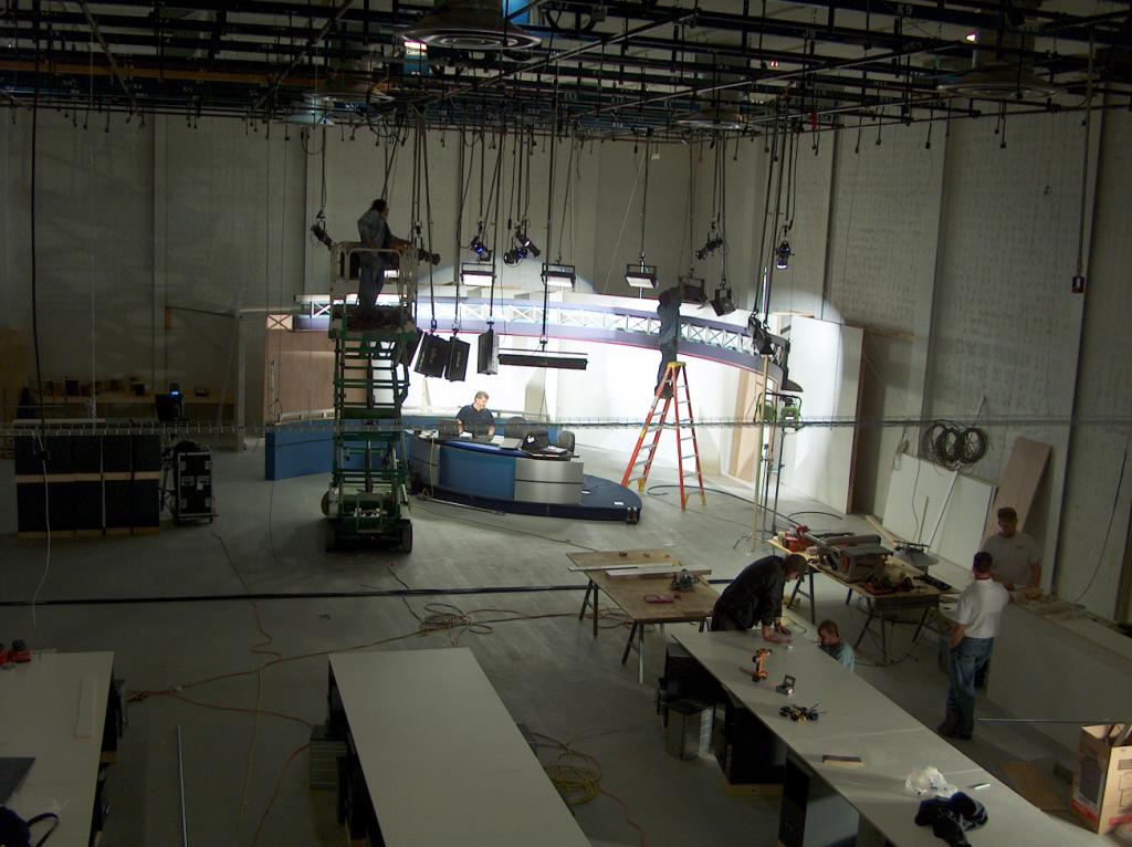 Back in the studio, the Pit has been cleaned out and will be covered over in preparation for the temporary newsroom and studio.
