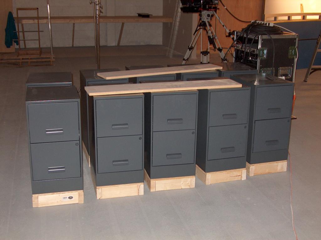 File cabinets, which will be used as bases for the temporary desks.
