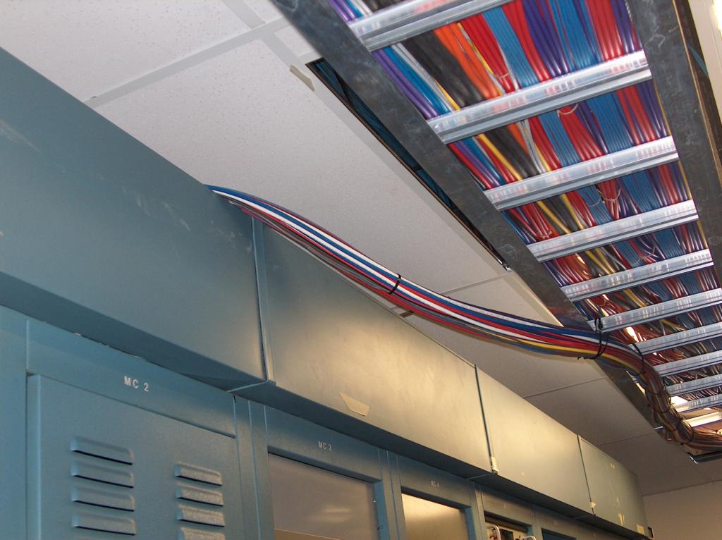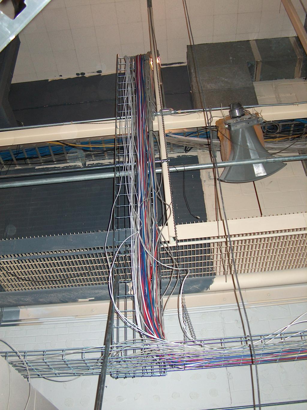 It takes lots of wires to make it all work. These run from the edit rooms and the new video room upstairs.