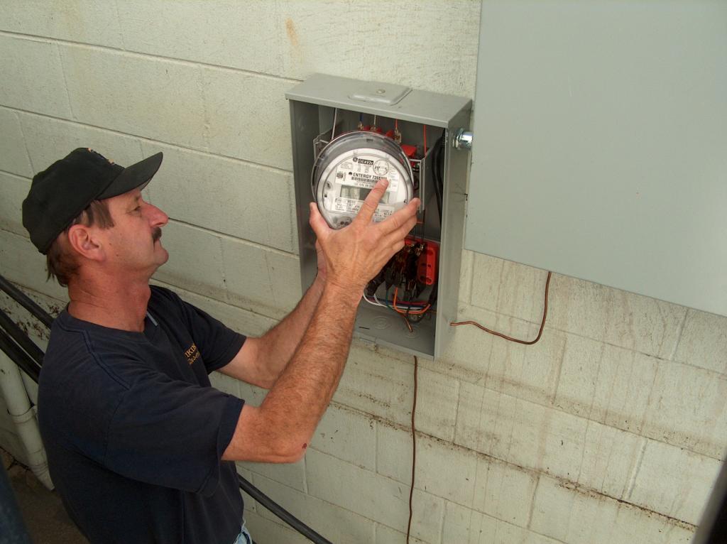 An Entergy technician installing the Money Meter.