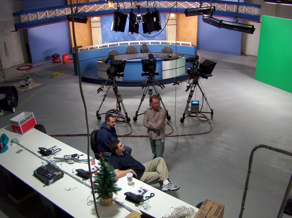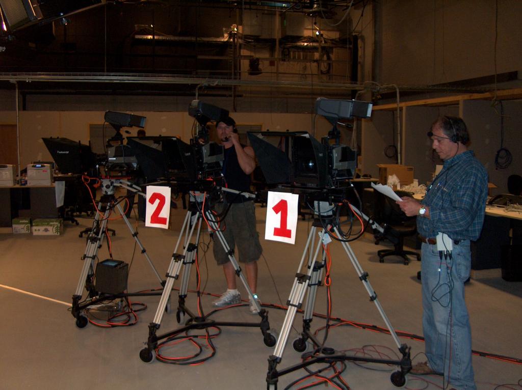 Just like the Old Days - manning the cameras for the newscast.